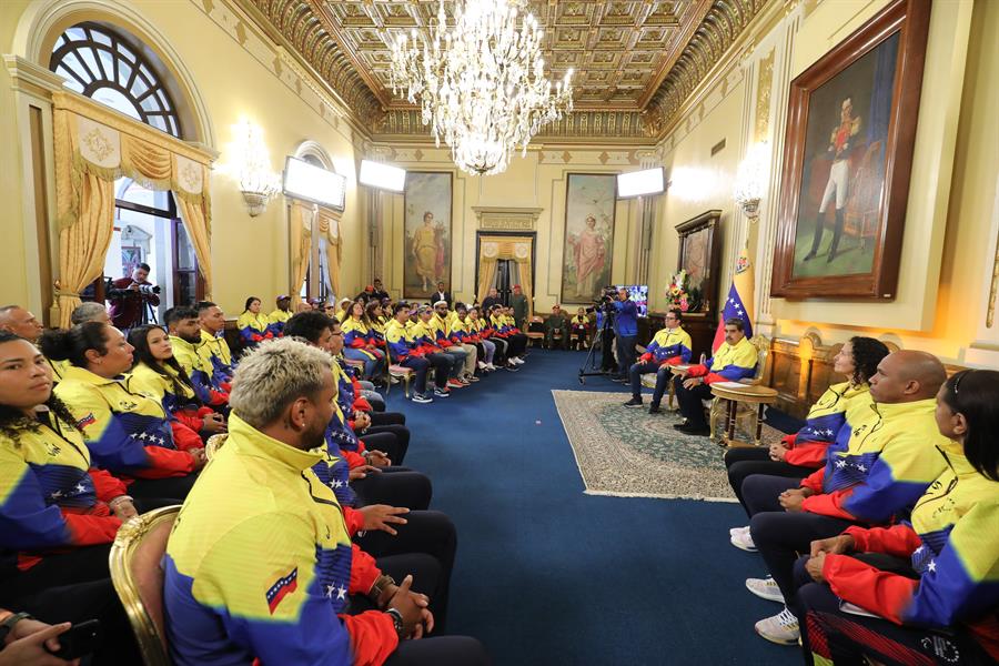 La delegación de deportistas paralímpicos fue recibida en el Palacio de Miraflores, donde el jefe de Estado, Nicolás Maduro, felicitó a los deportistas paralímpicos, entre ellos a los medallistas de oro, Clara Fuentes (halterofilia), Enderson Santos (paratletismo) y Morillo; de plata, Alejandra Pérez y Lisbeli Vera, ambas también en paratletismo; y al ganador de bronce, Marcos Blanco (parajudo).