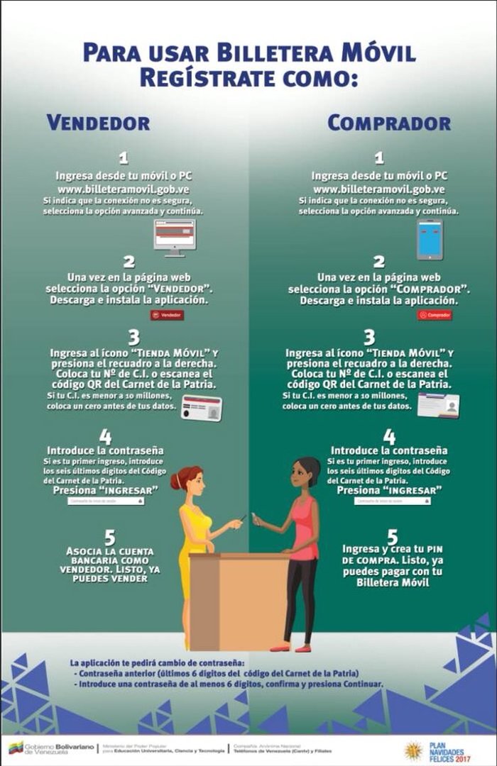 Para usar la Billetera Móvil no se necesita cuenta bancaria, ya que se puede recargar el Carnet de la Patria en cualquier taquilla de la Banca Pública Nacional. Y una vez registrado el usuario en el sistema, este mismo puede colocar su propia clave.