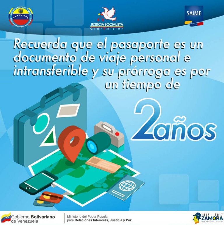 Hay que recordar que a principios del mes de octubre, el directivo había informado que Saime otorgaría la exención del pasaporte electrónico por un plazo de dos años desde de la impresión de la prórroga. Aclarando que el organismo busca incrementar el estado de validez para los documentos de viaje, vencidos o próximos a vencerse, si cumplen con la condición de que el pasaporte esté en buenas condiciones, sea electrónico y tenga cuatro páginas libres de sellos.
